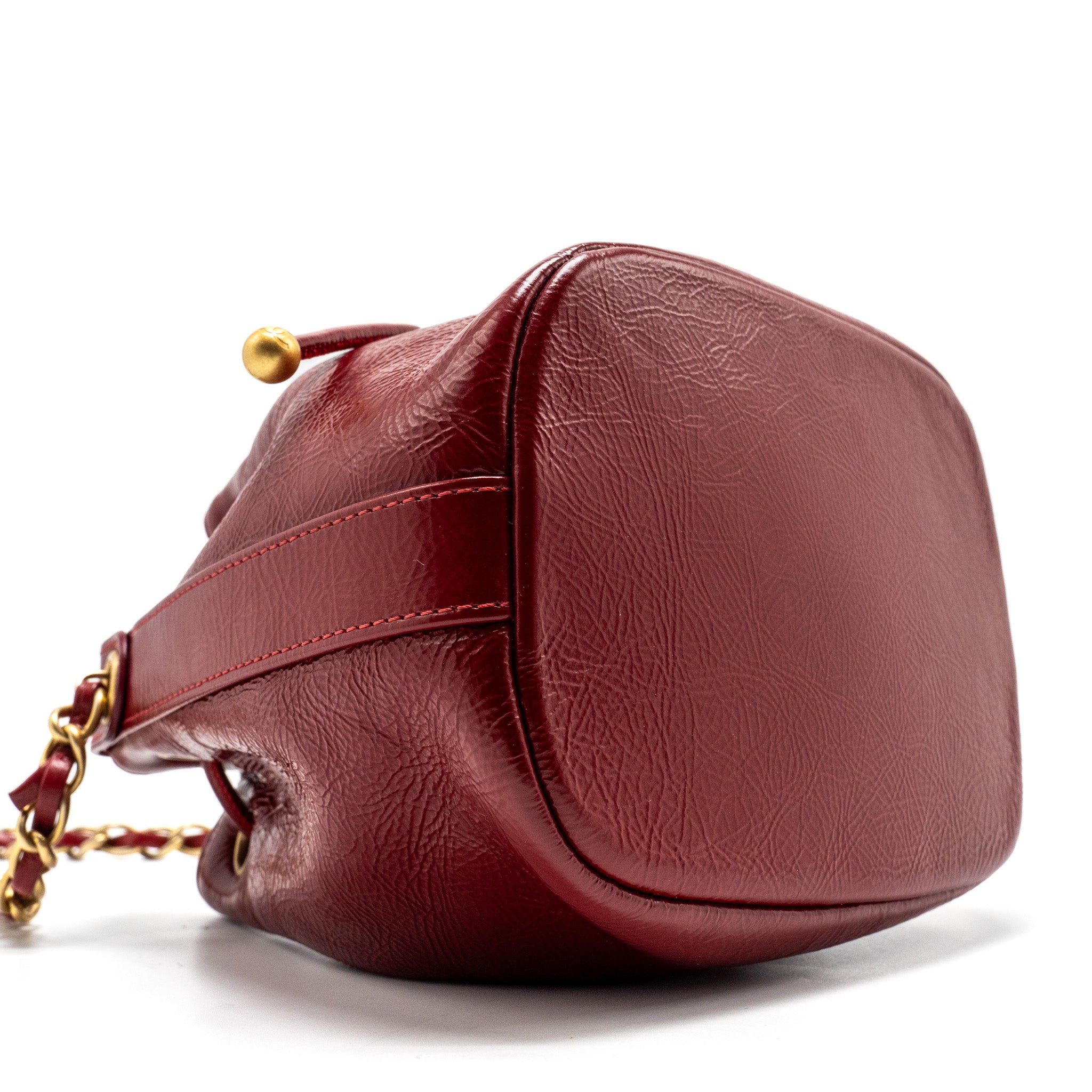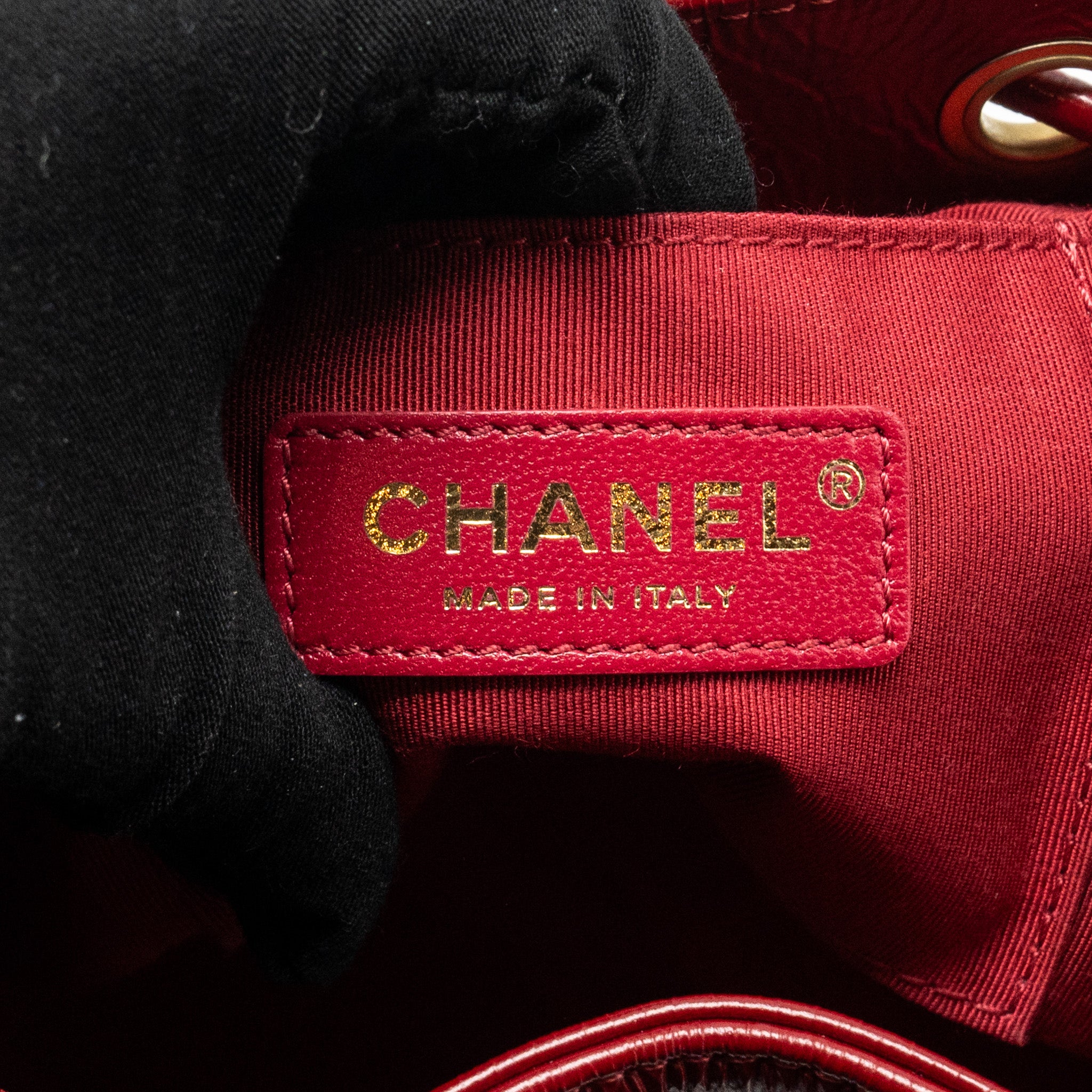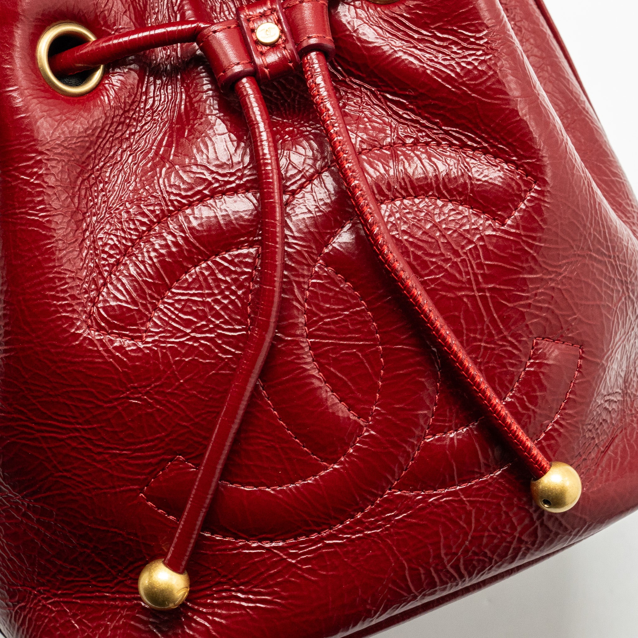 Chanel CC Drawstring Mini Bucket Bag Shiny Aged Calfskin Red GHW