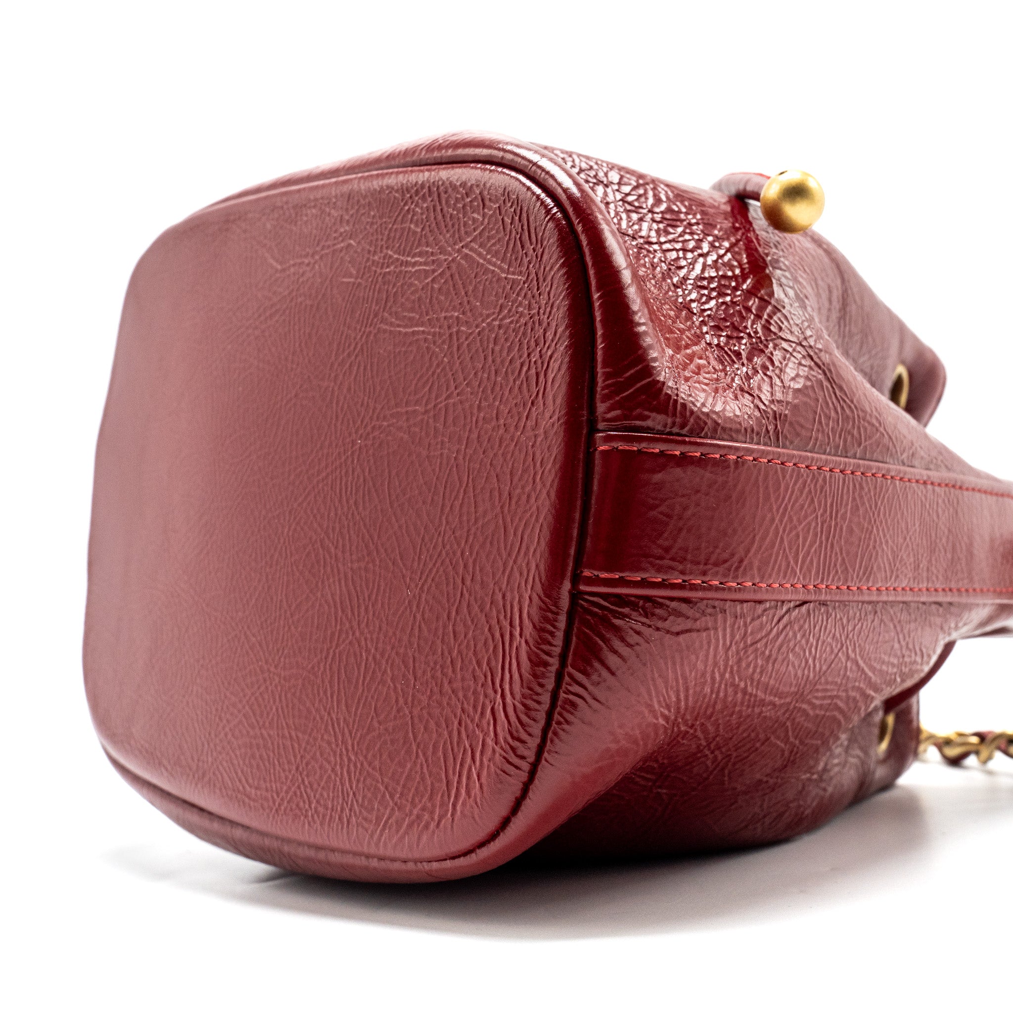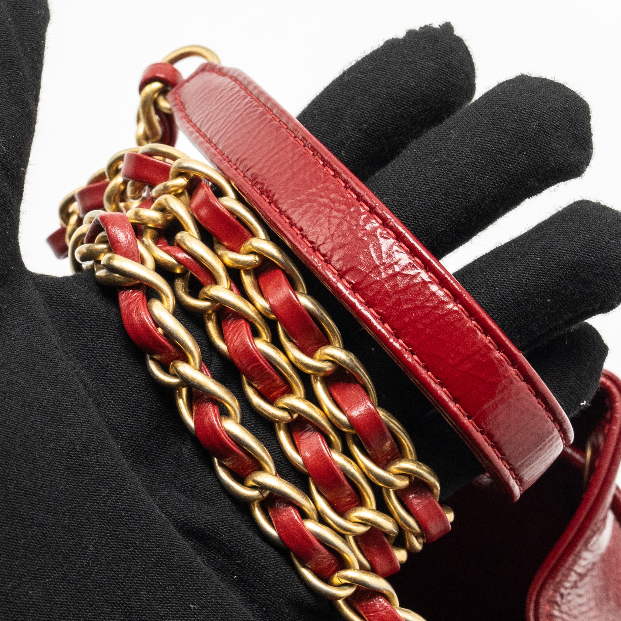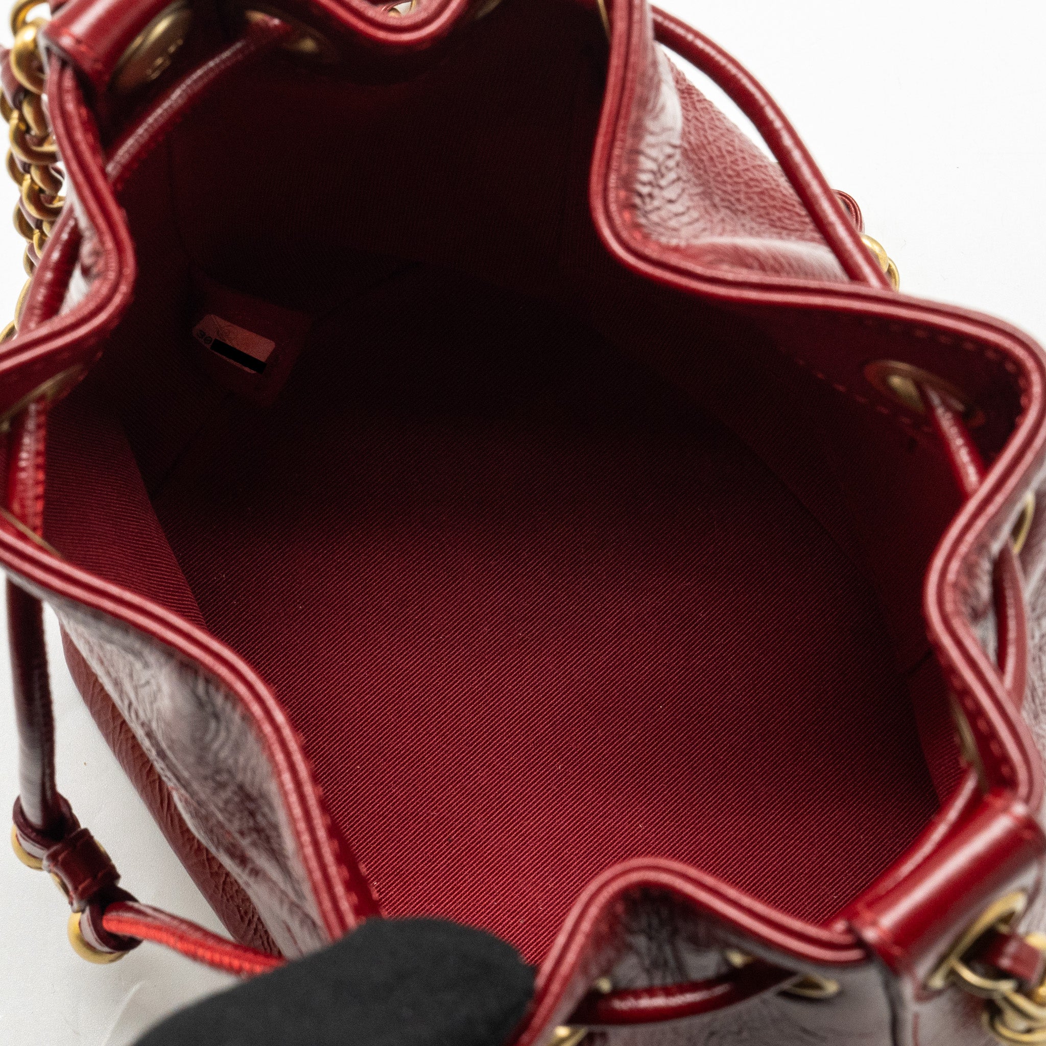 Chanel CC Drawstring Mini Bucket Bag Shiny Aged Calfskin Red GHW