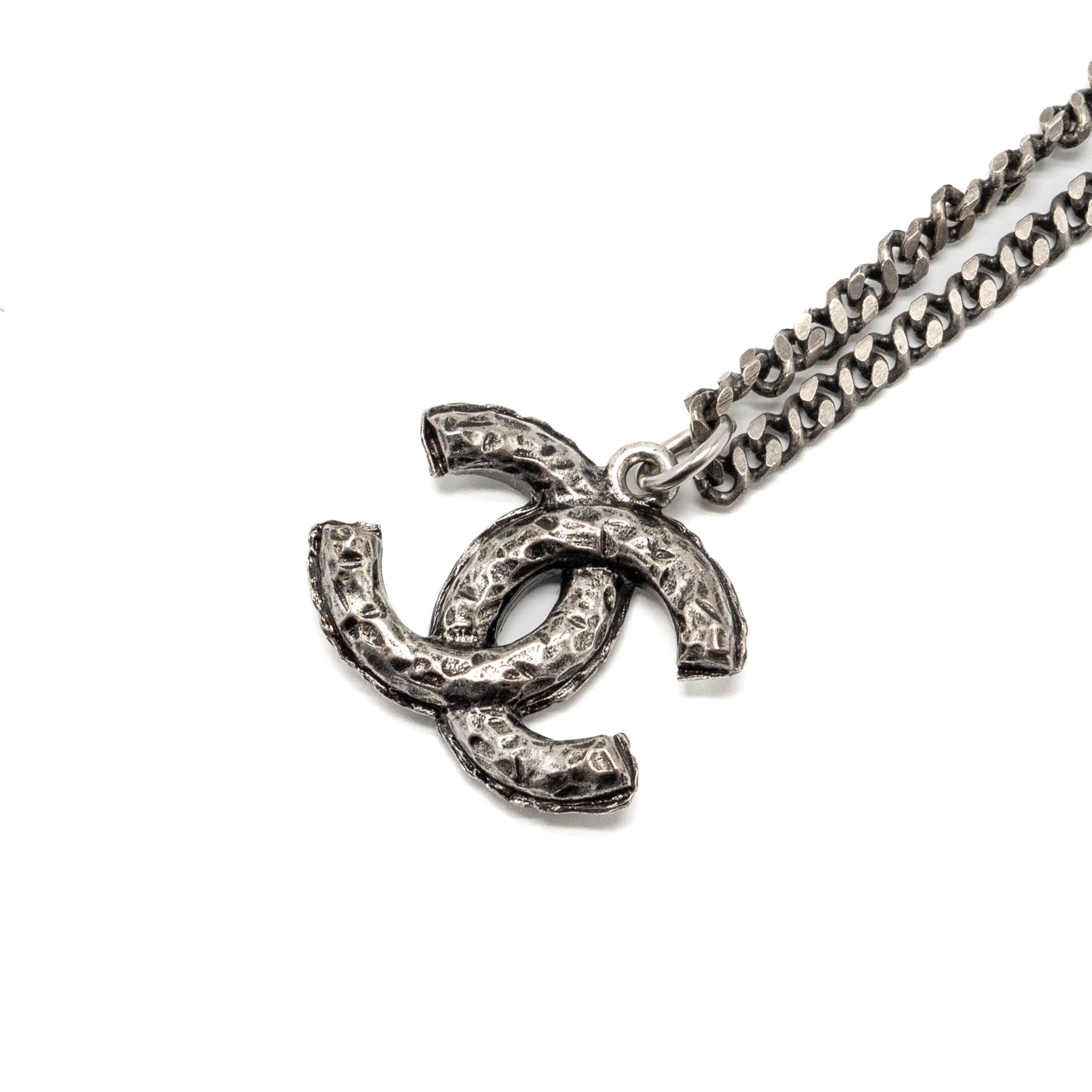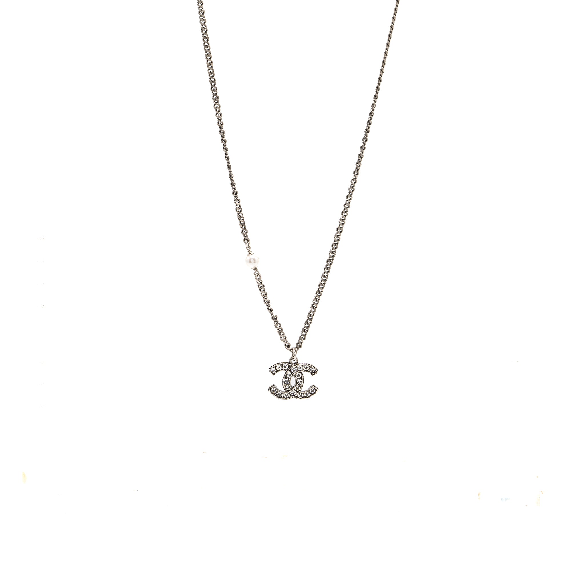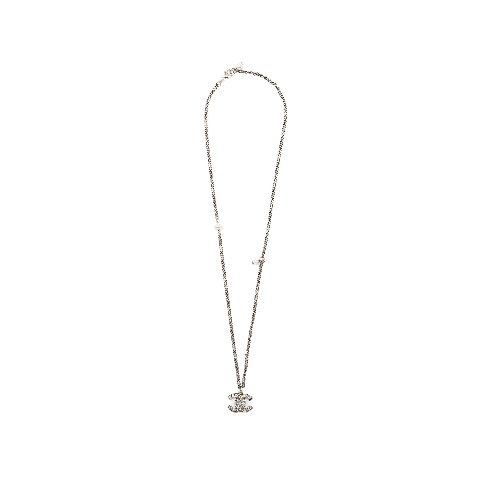 Chanel cc logo necklace crystal/pearl ruthenium hardware