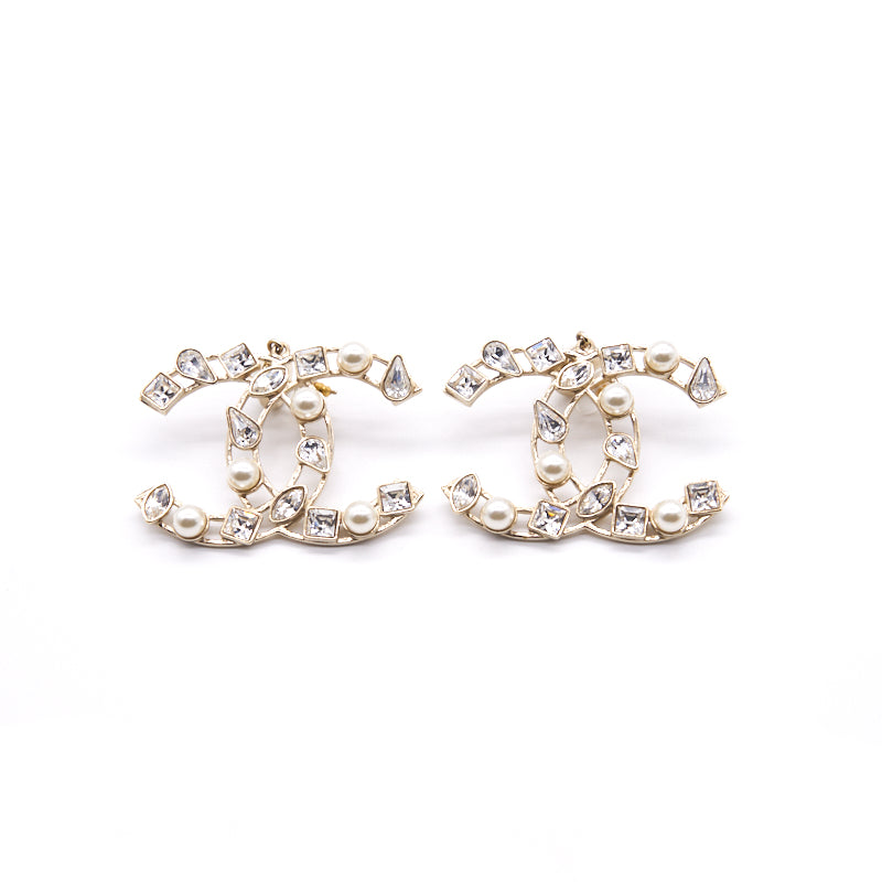 Chanel Crystal Pearl Hoop Earrings CC Gold 2019