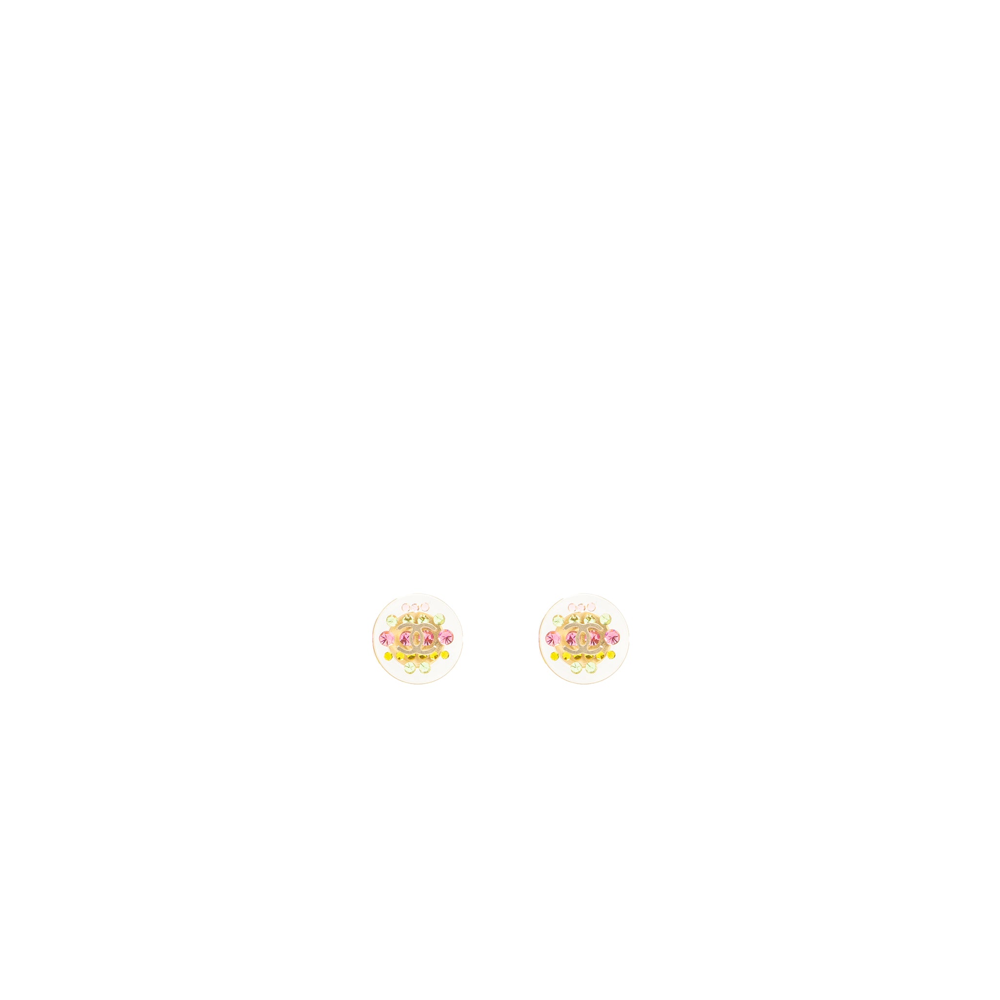 Chanel mini round with CC logo rainbow earrings light gold tone
