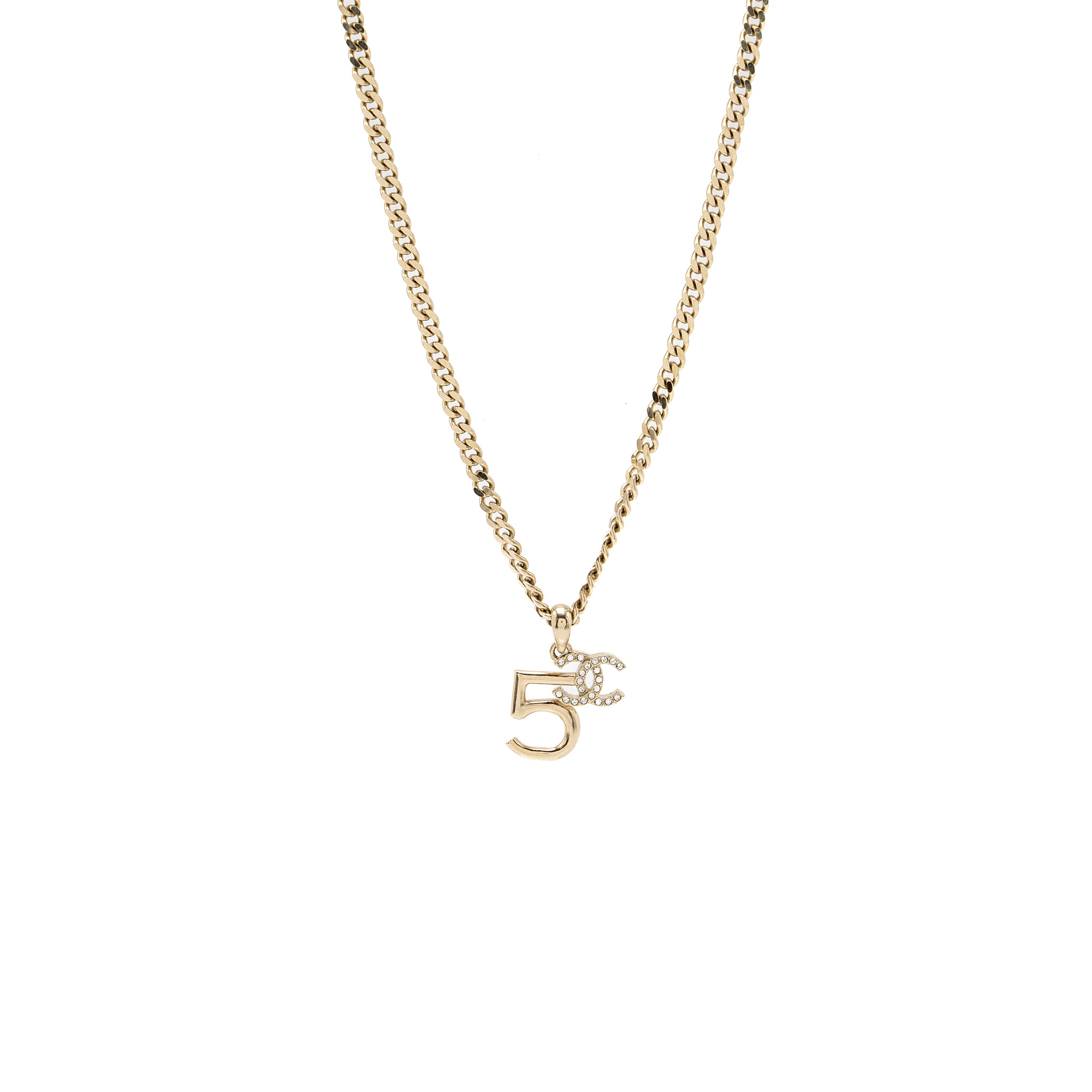 Chanel no5/cc logo necklace crystal Light Gold Tone