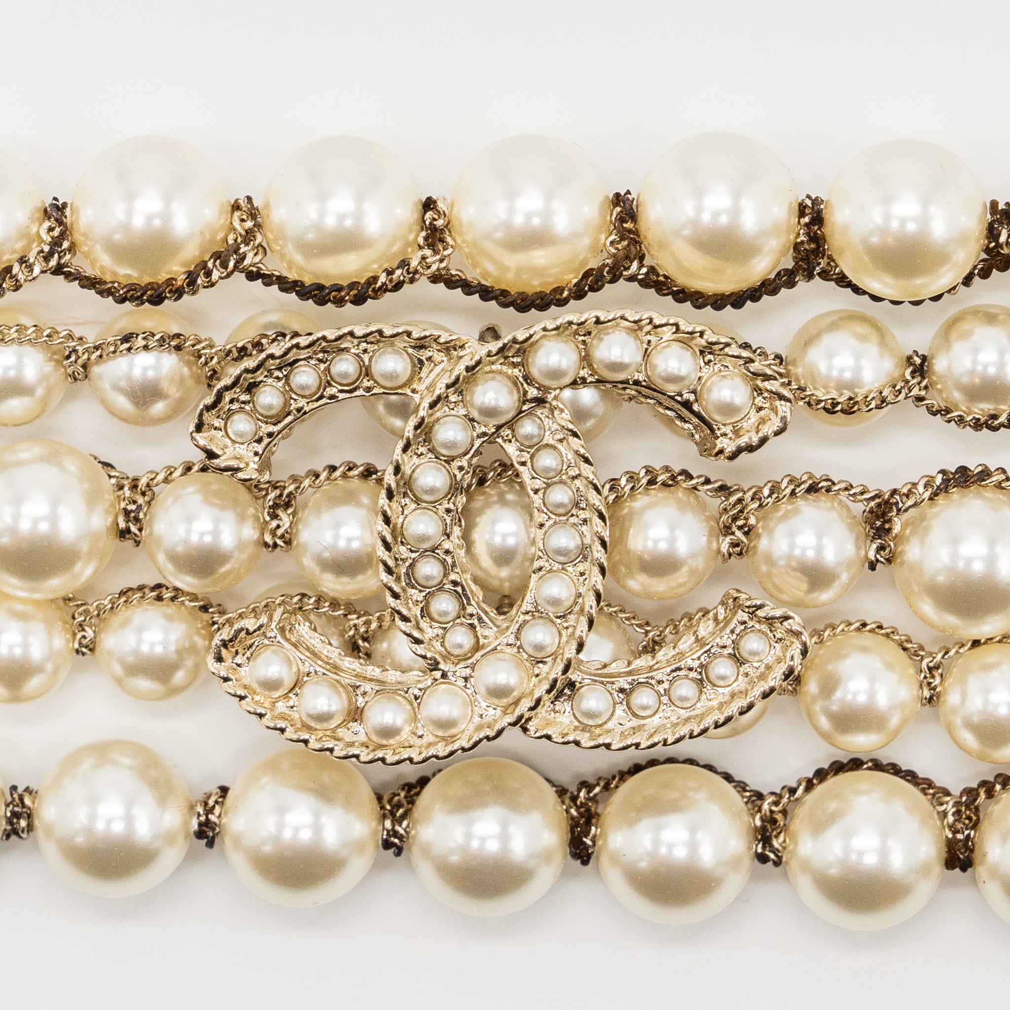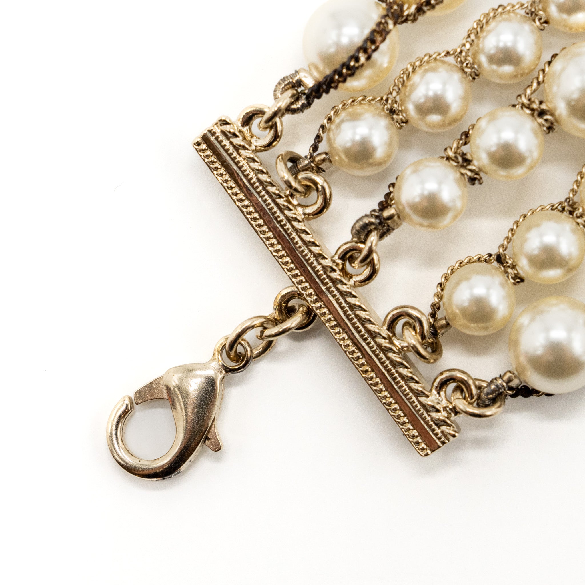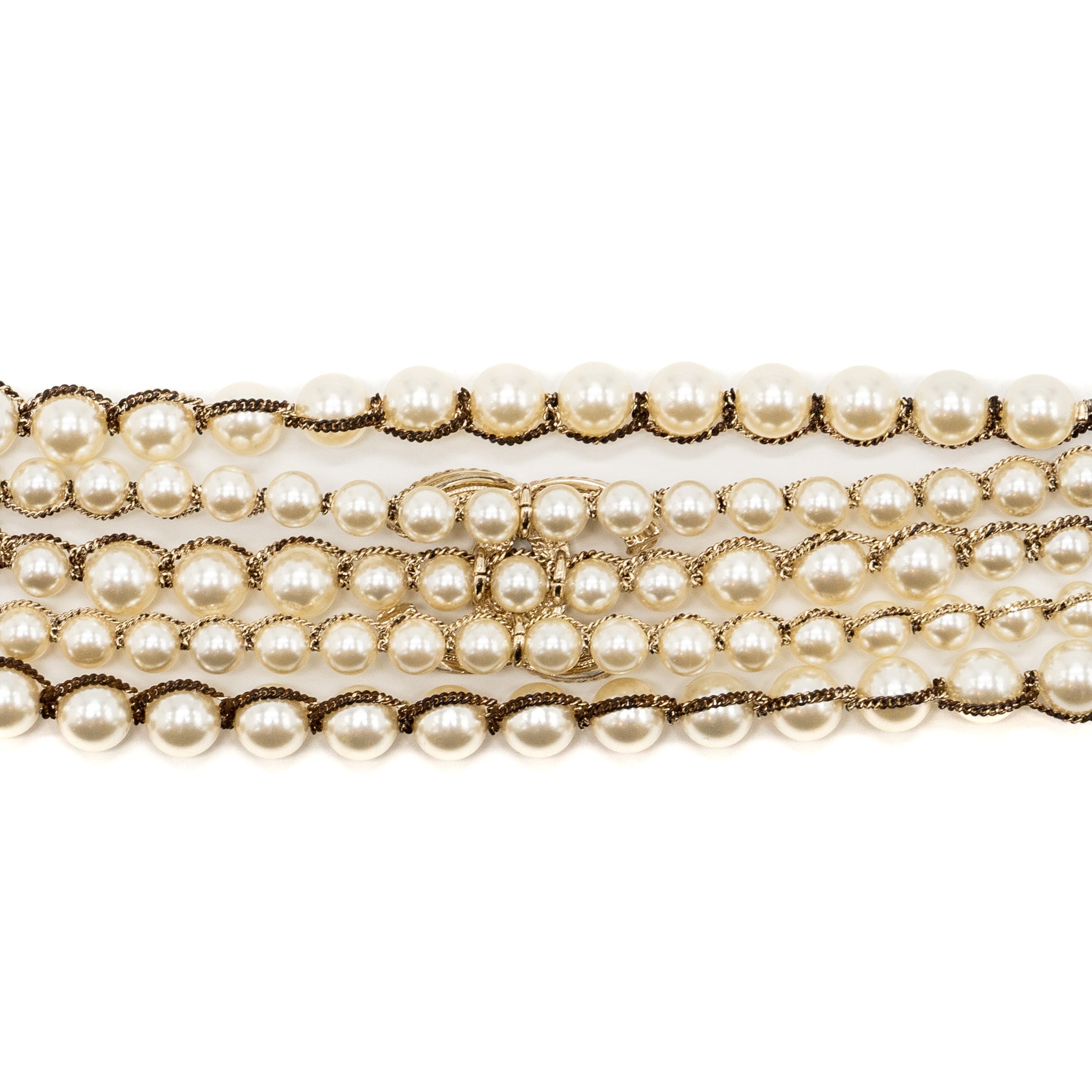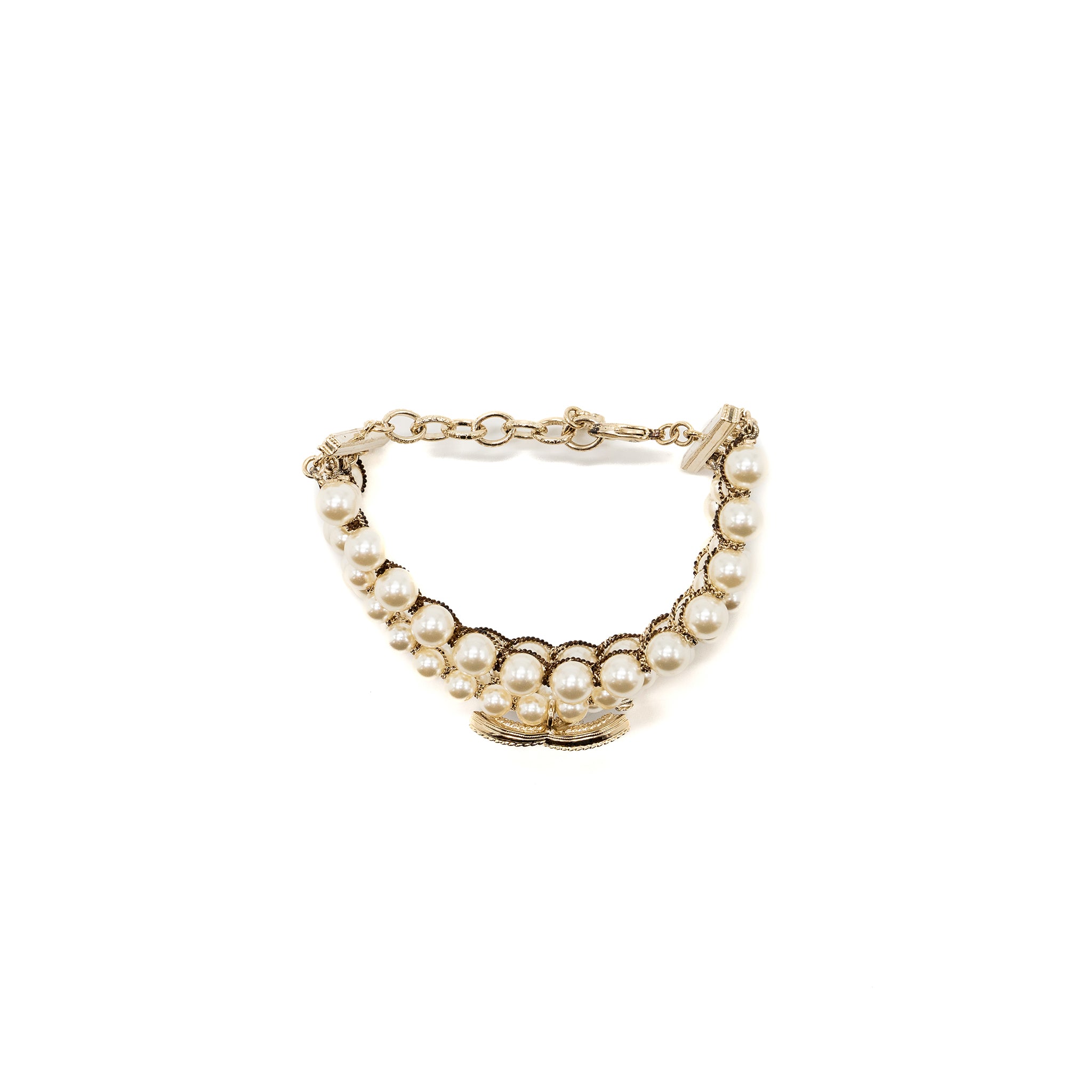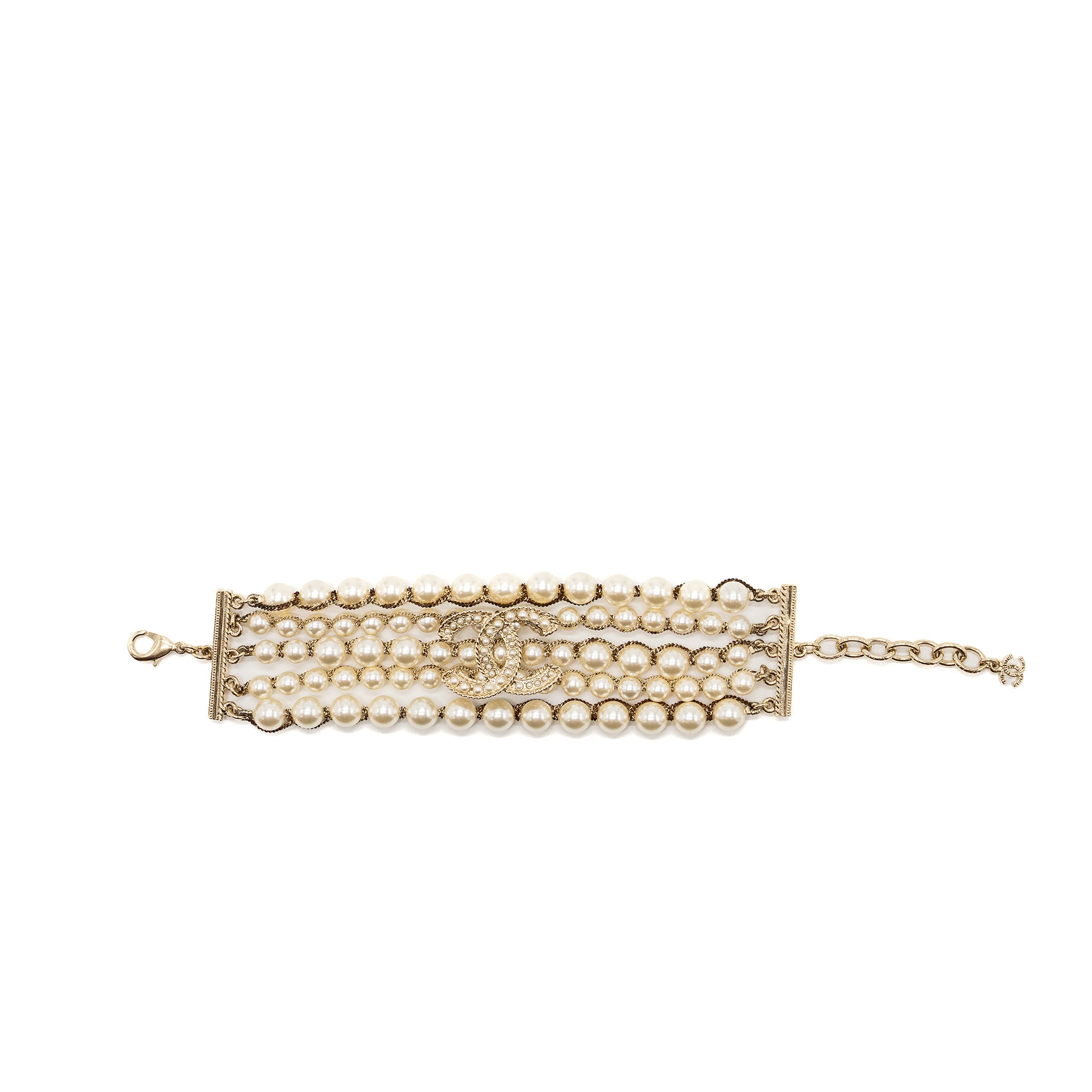 Material: Light Gold-Finish Metal with White Resin Pearls (strass)