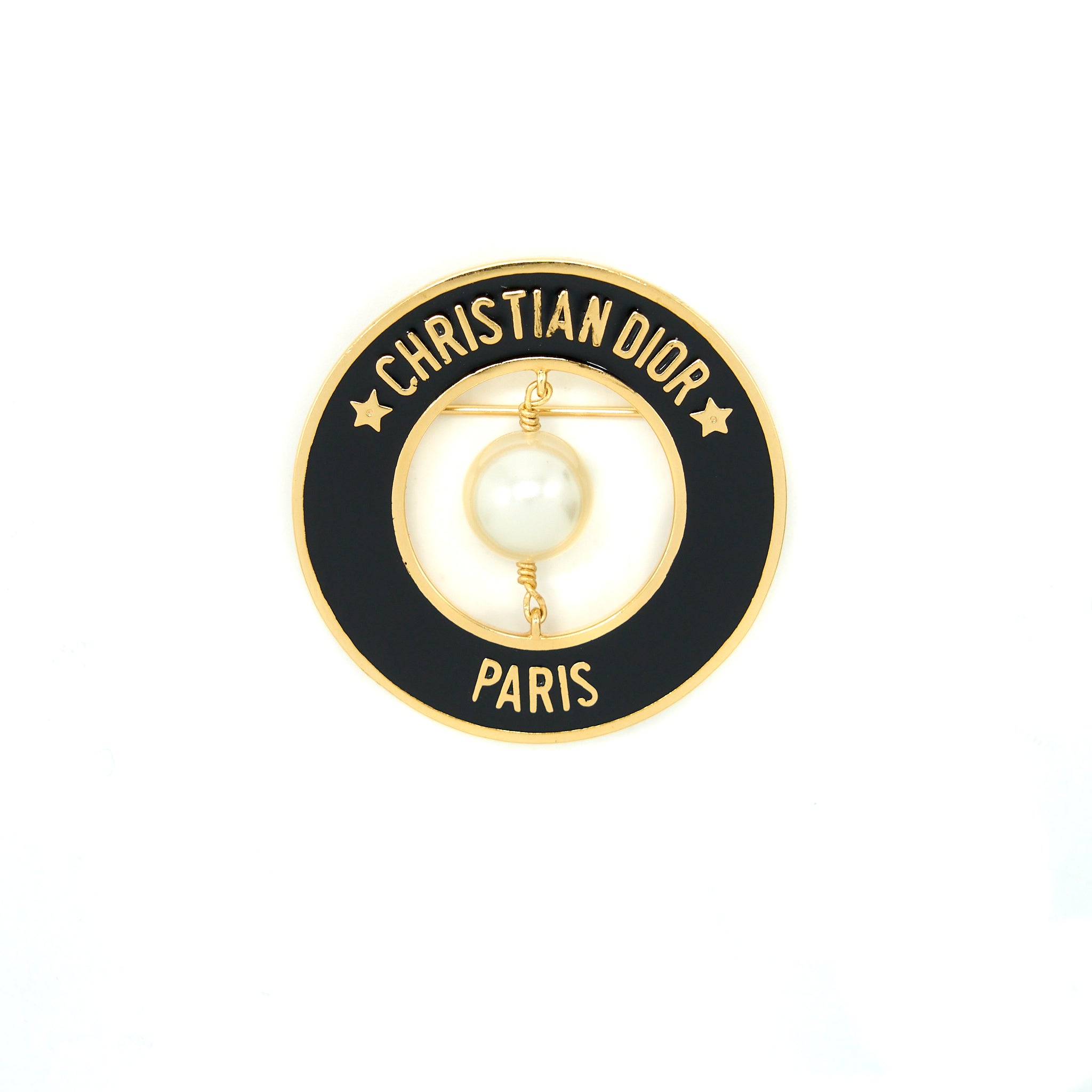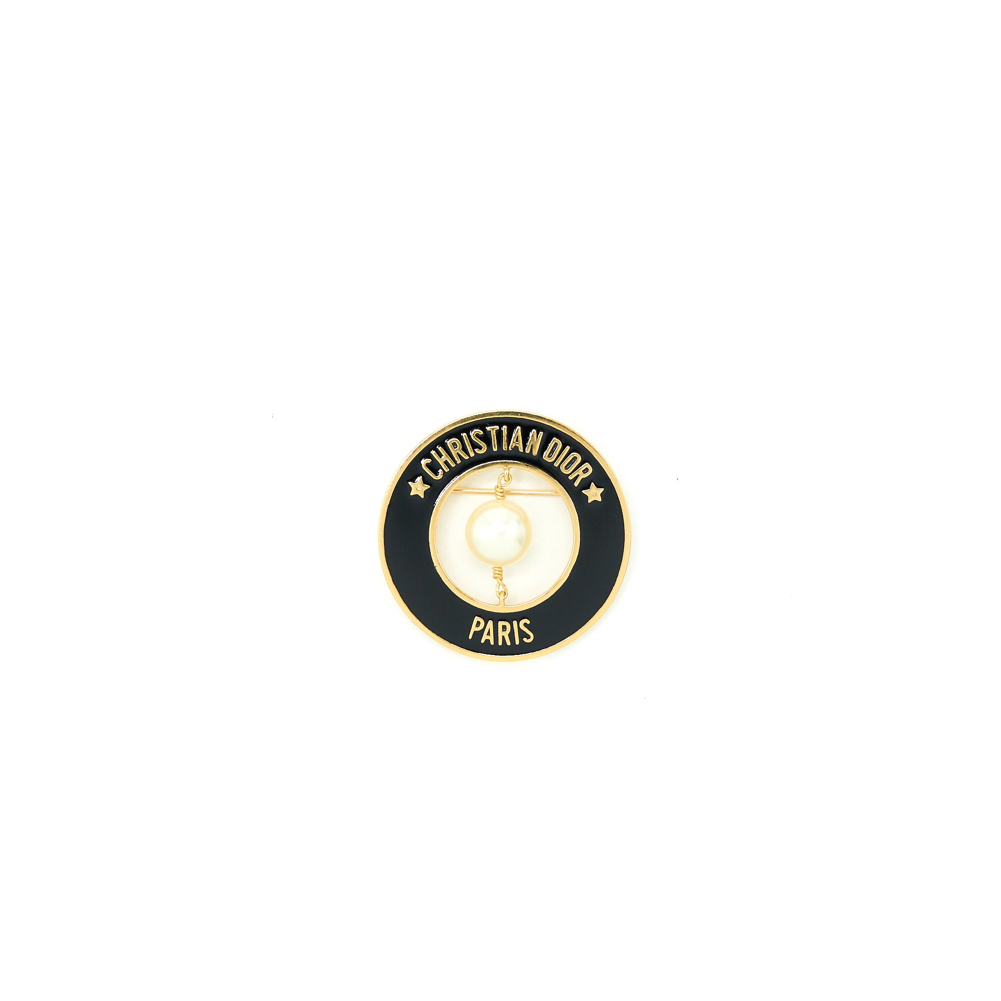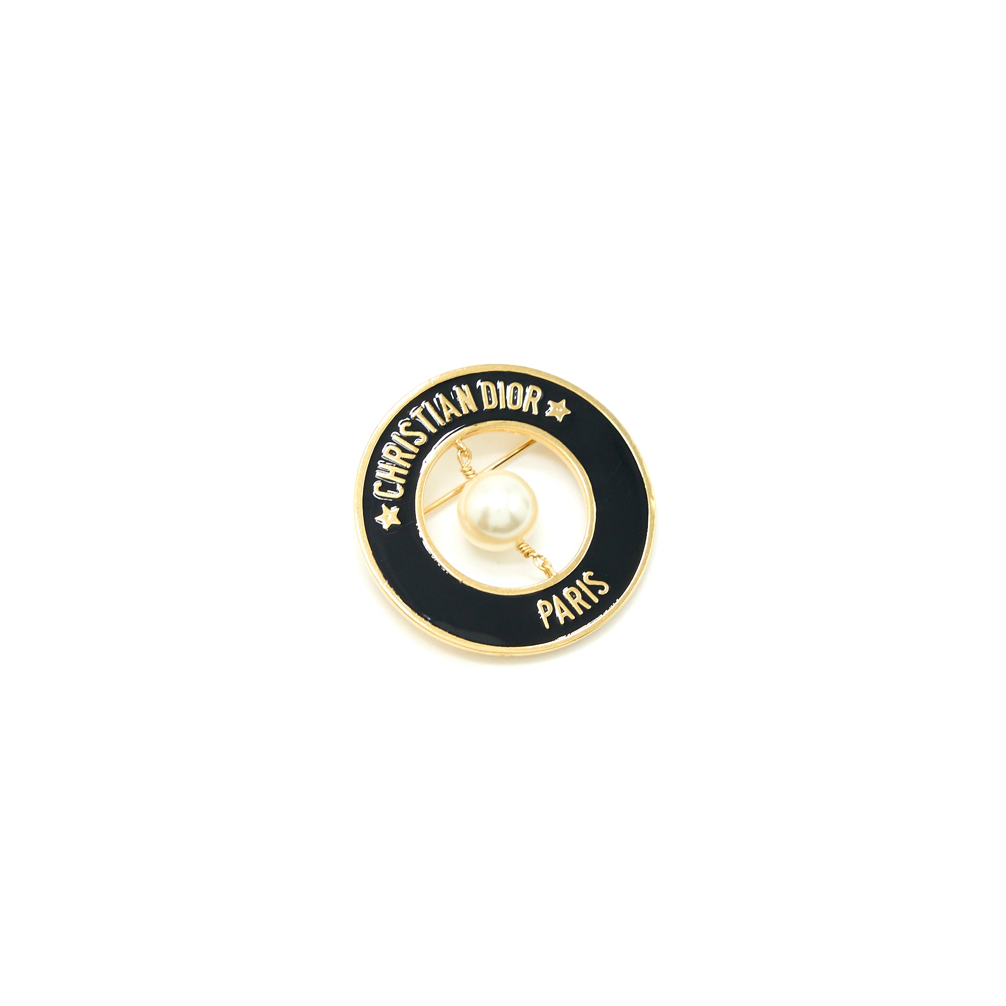 Christian Dior Round Pearl Brooch Black GHW