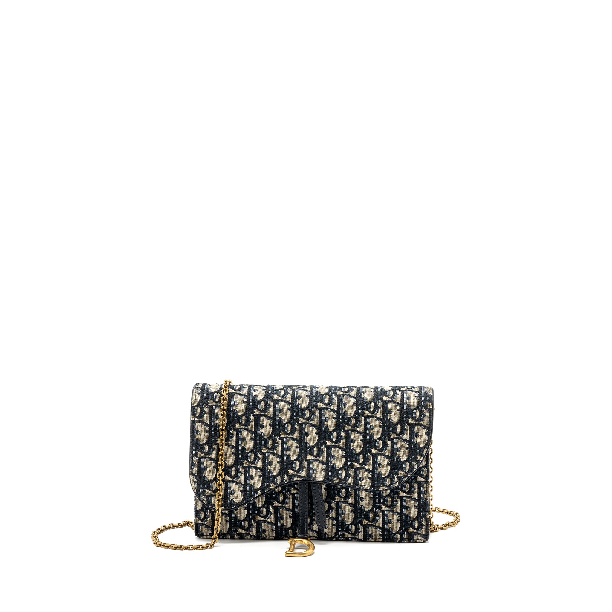 Dior Saddle Pouch With Chain Dior Oblique Jacquard blue GHW