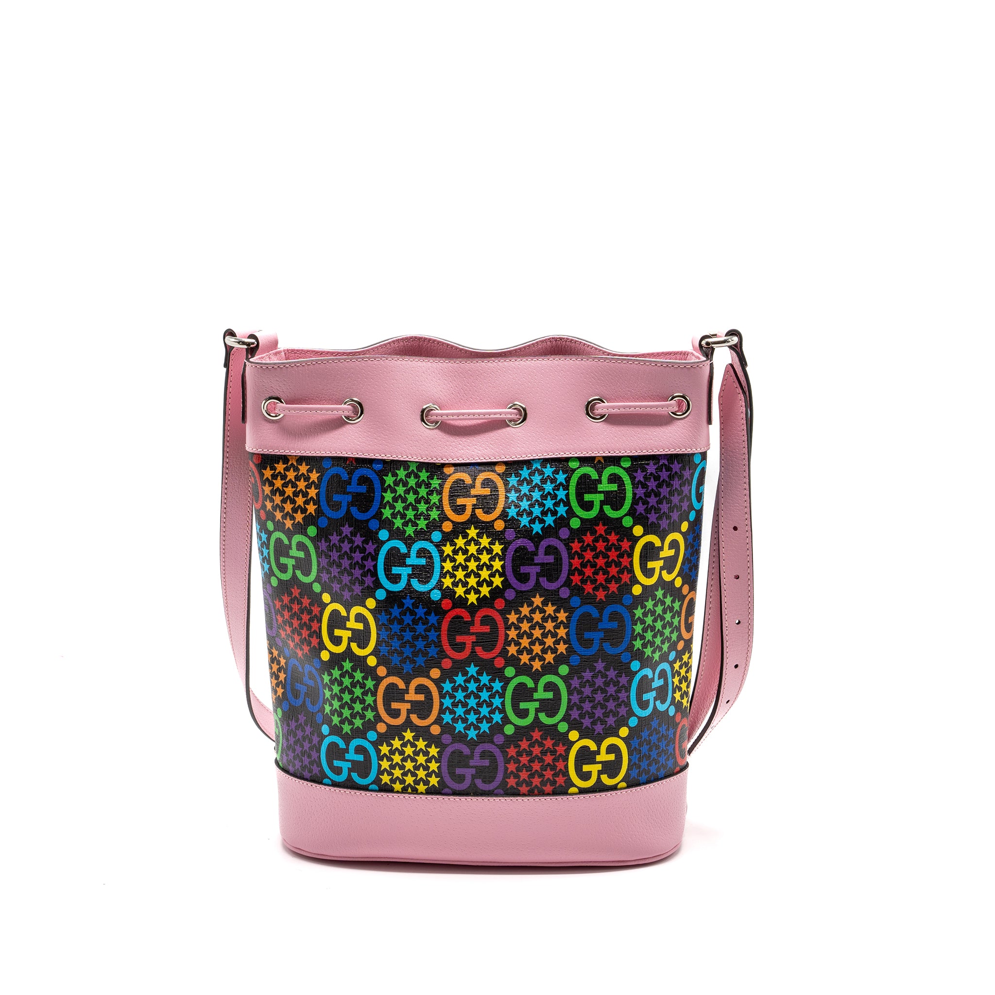 Gucci large drawstring bucket bag multicolour black / pink SHW