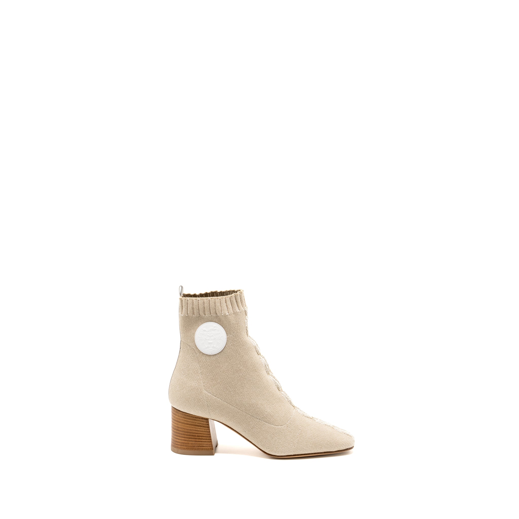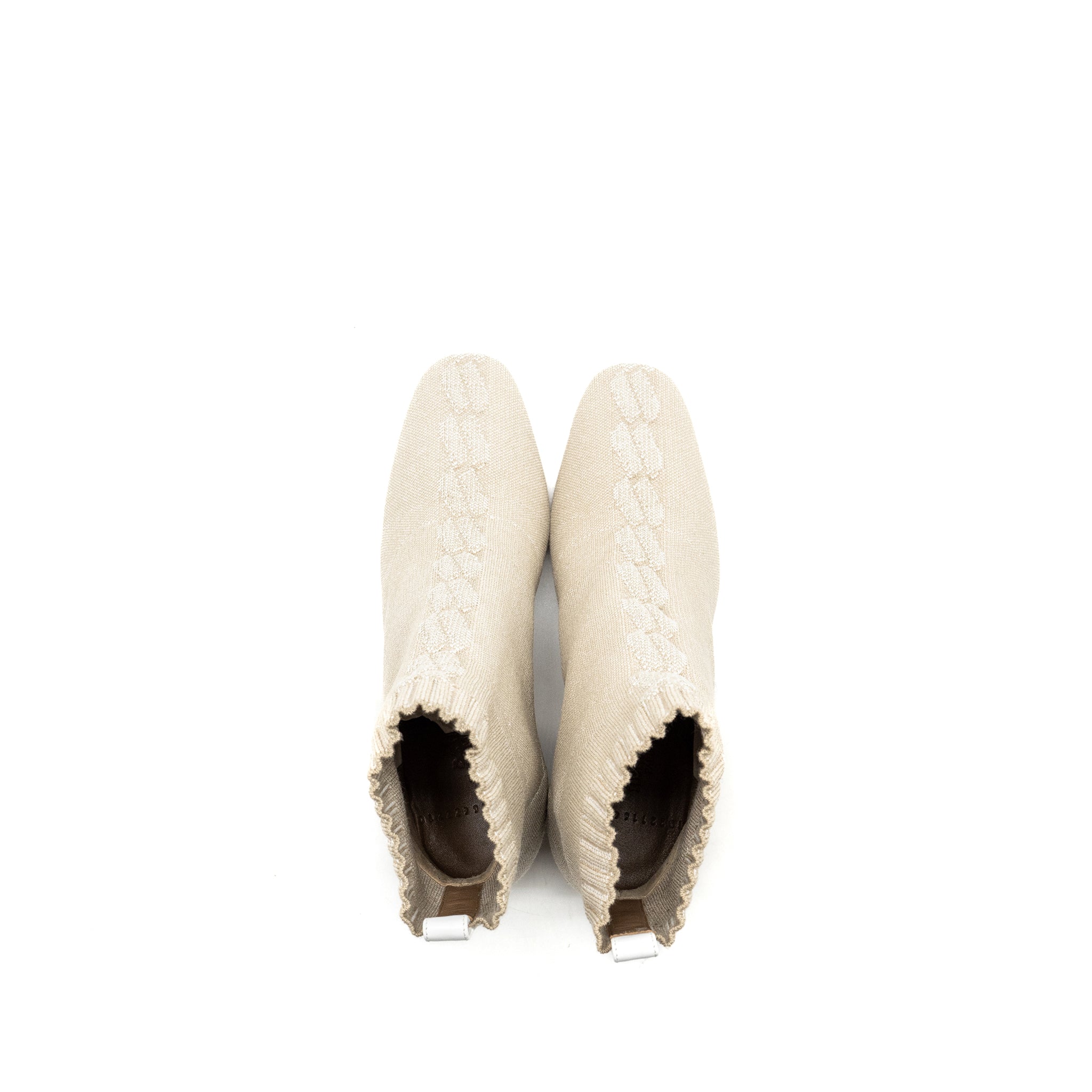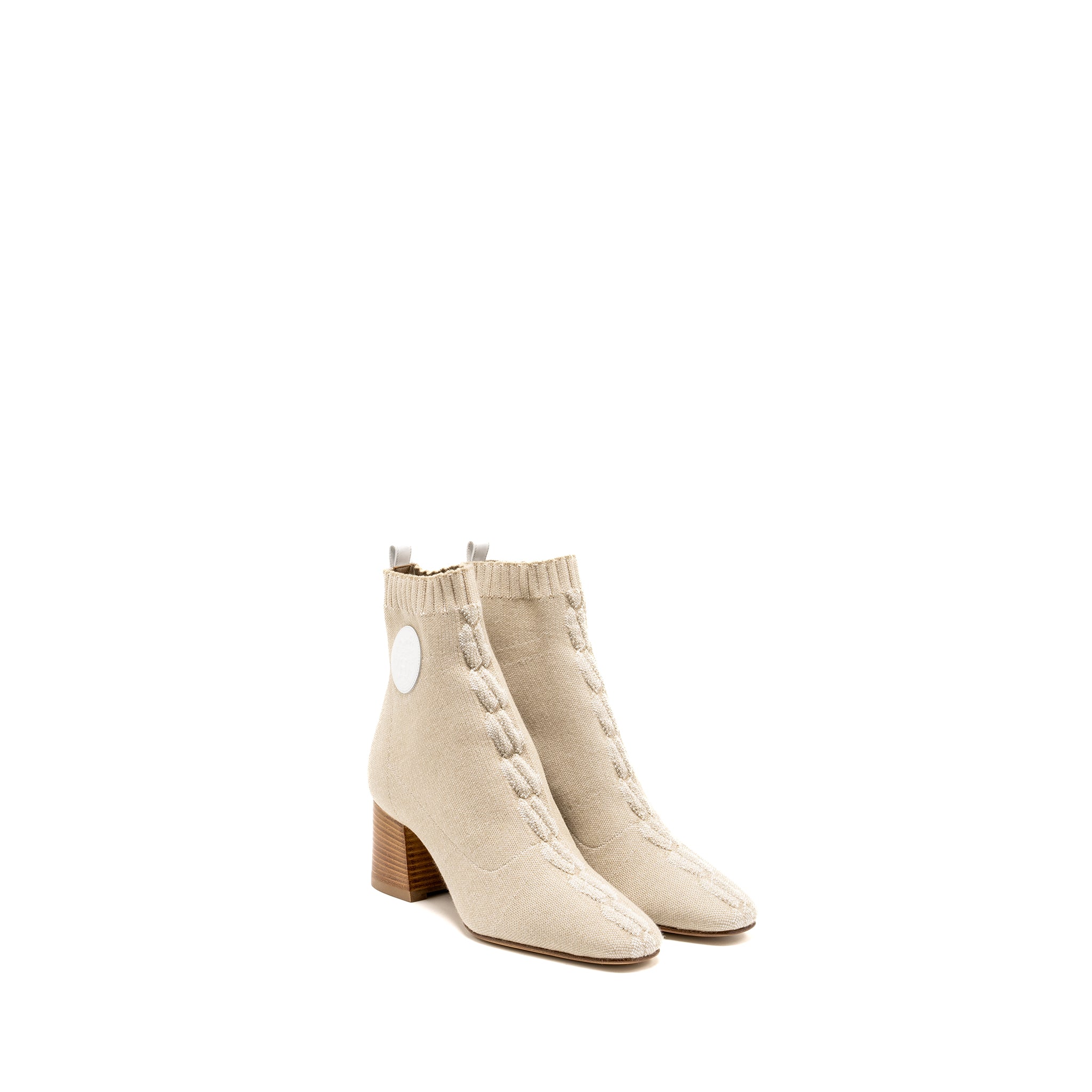 Hermes Size 37 Volver 60 Ankle Boot Chenille Knit/Calfskin Blanc