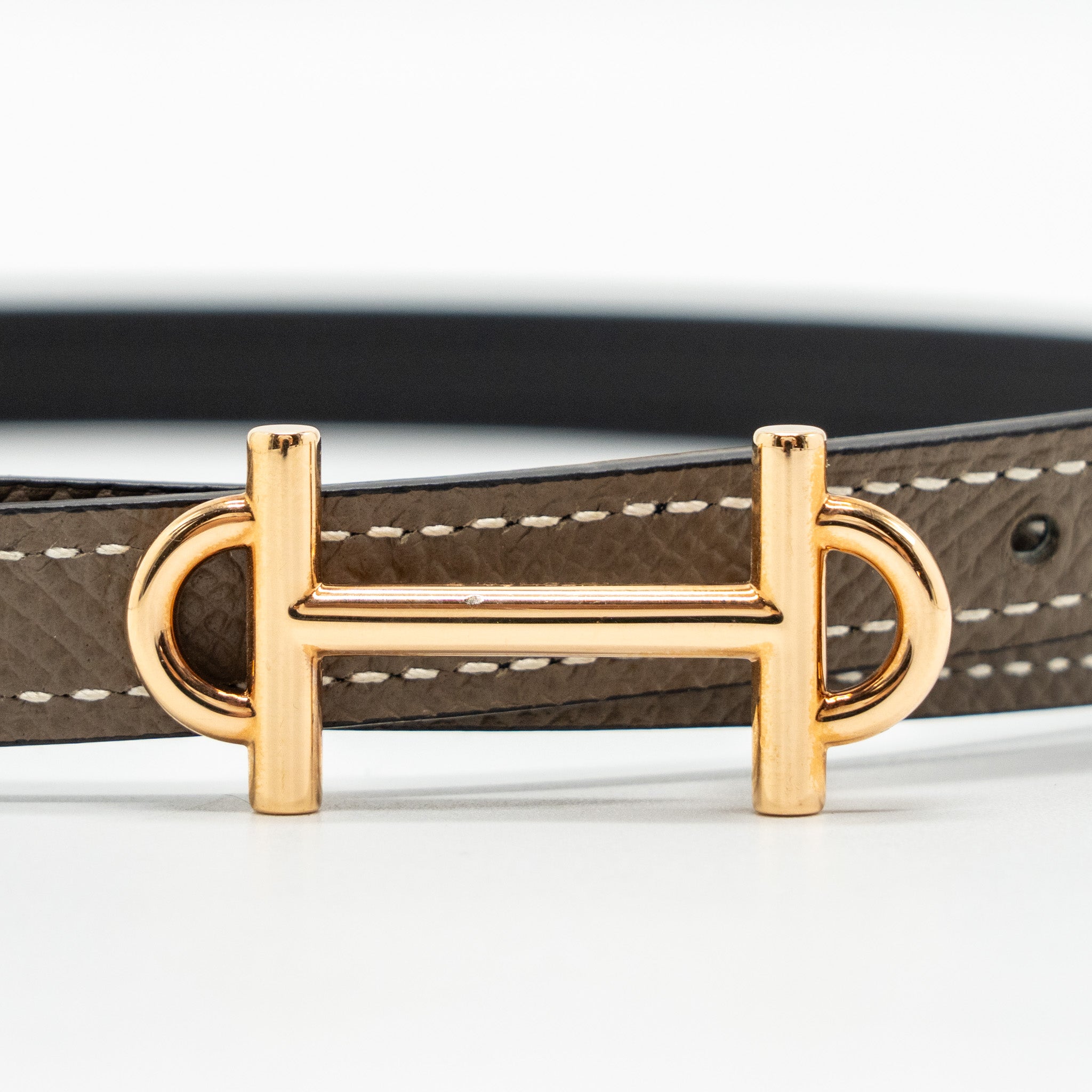 Hermes size 70cm Gamma belt buckle & Reversible leather strap 13 mm etoupe / black RGHW stamp C