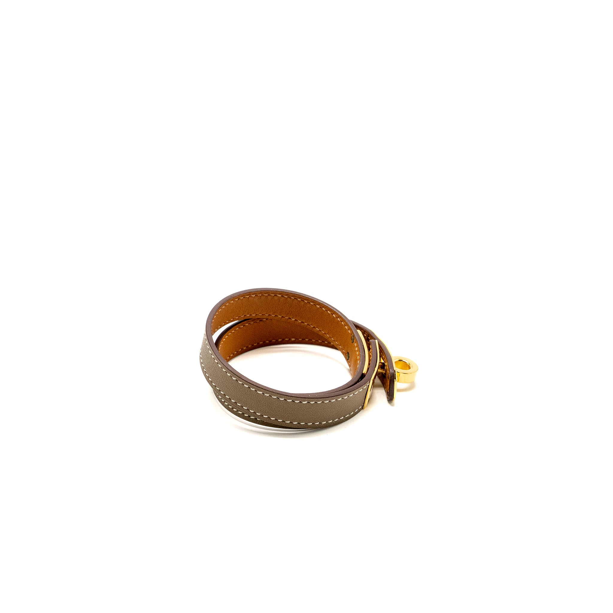 Hermes Size M Kelly Double Tour Bracelet Swift Etoupe GHW Stamp A