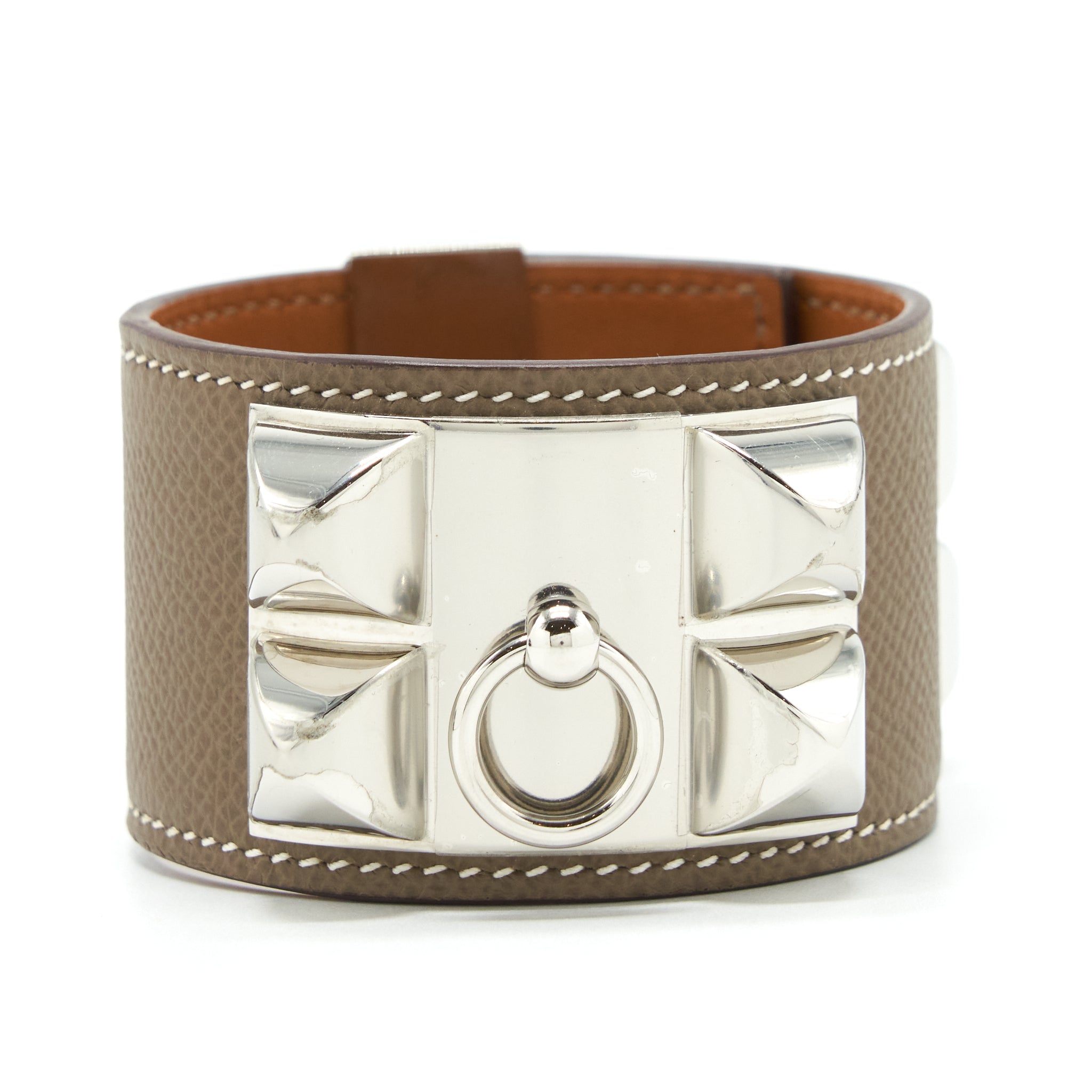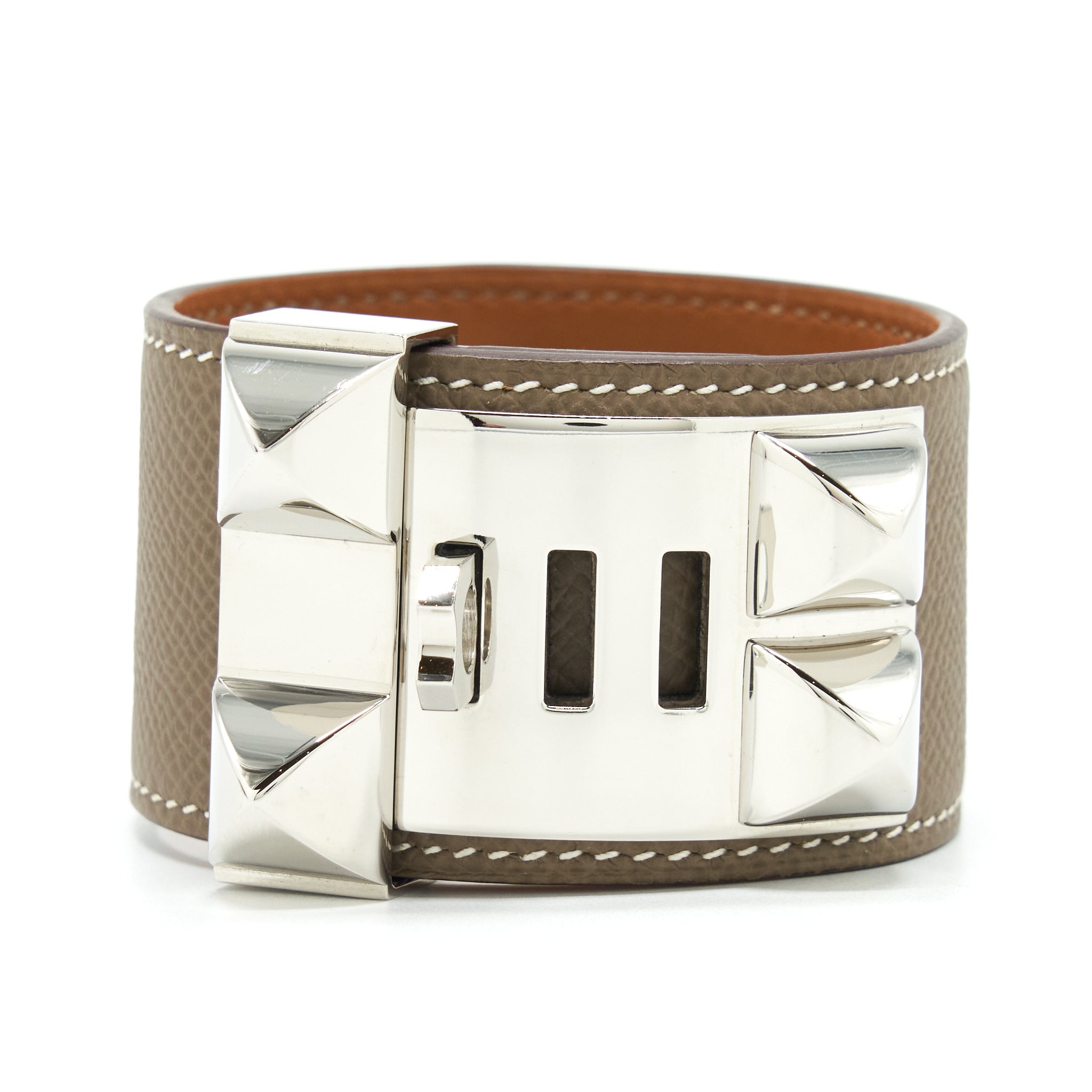 Hermes Size T3 Collier De Chien Bracelet Epsom Etoupe SHW