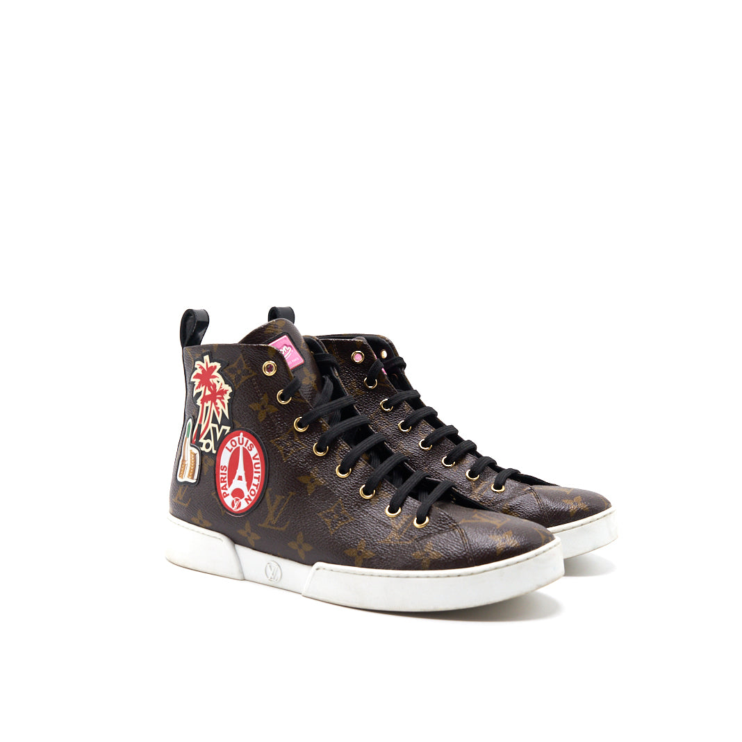 Louis Vuitton Brown Monogram Canvas and Black Leather High Top Sneakers