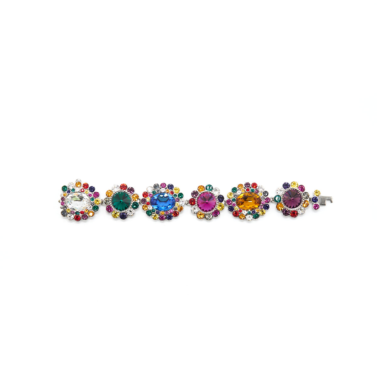 Miu Miu Rebels Multicolor Crystal Silver Tone Floral Bracelet