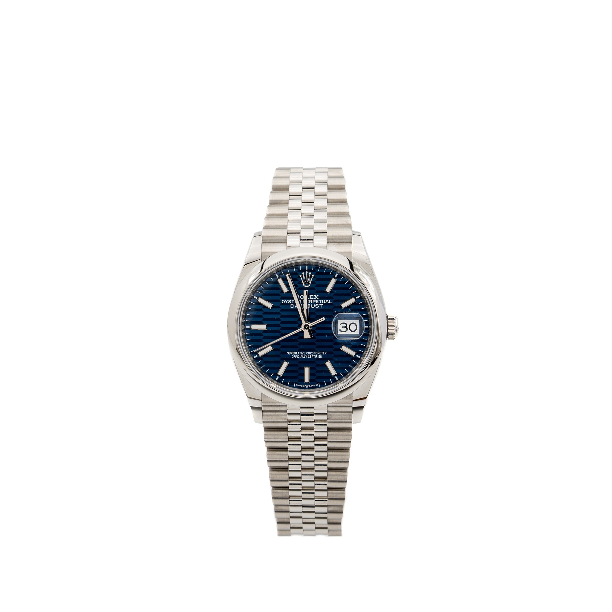 Rolex datejust 36 oystersteel with bright blue fluted-motif dial, oyster bracelet Model: m126200-0022