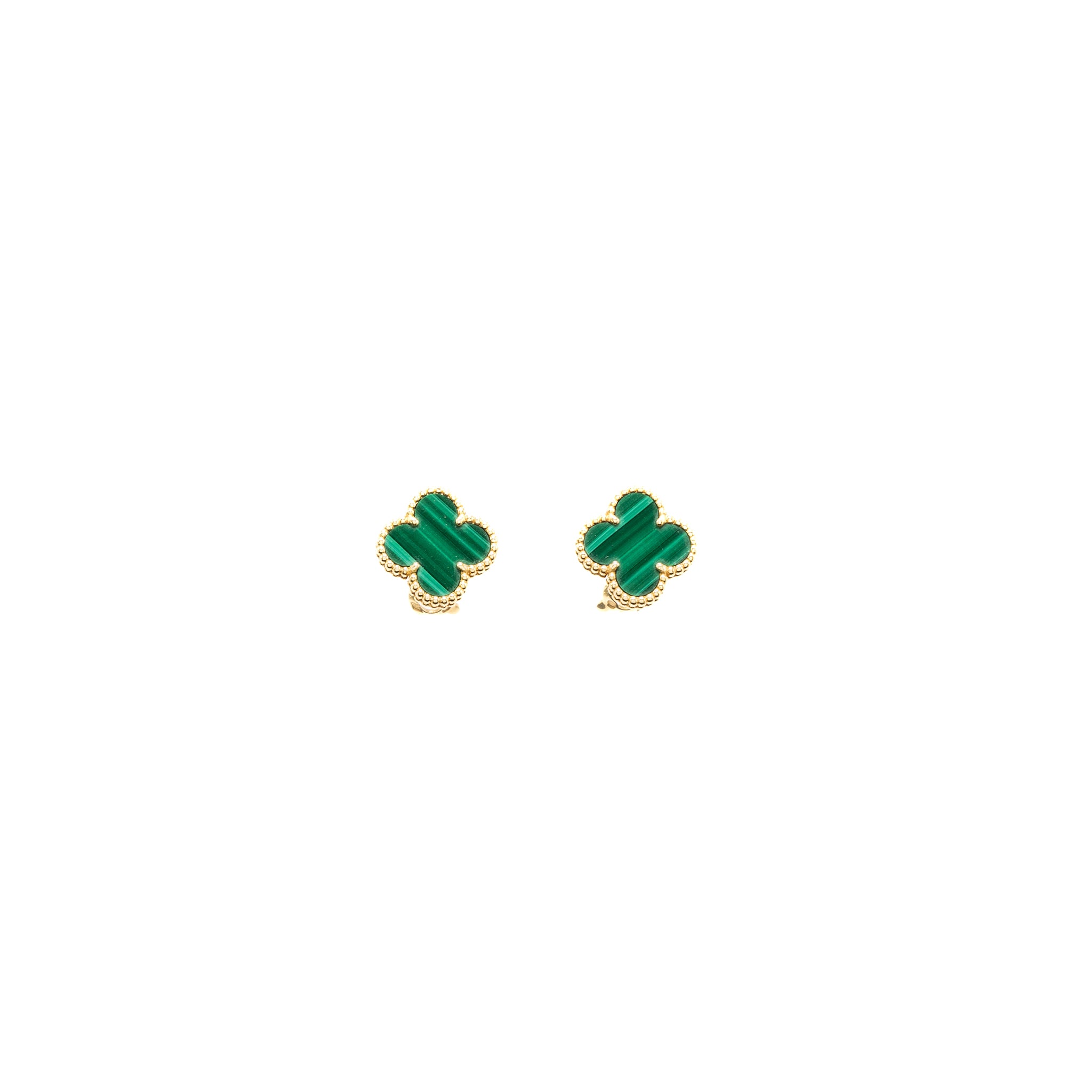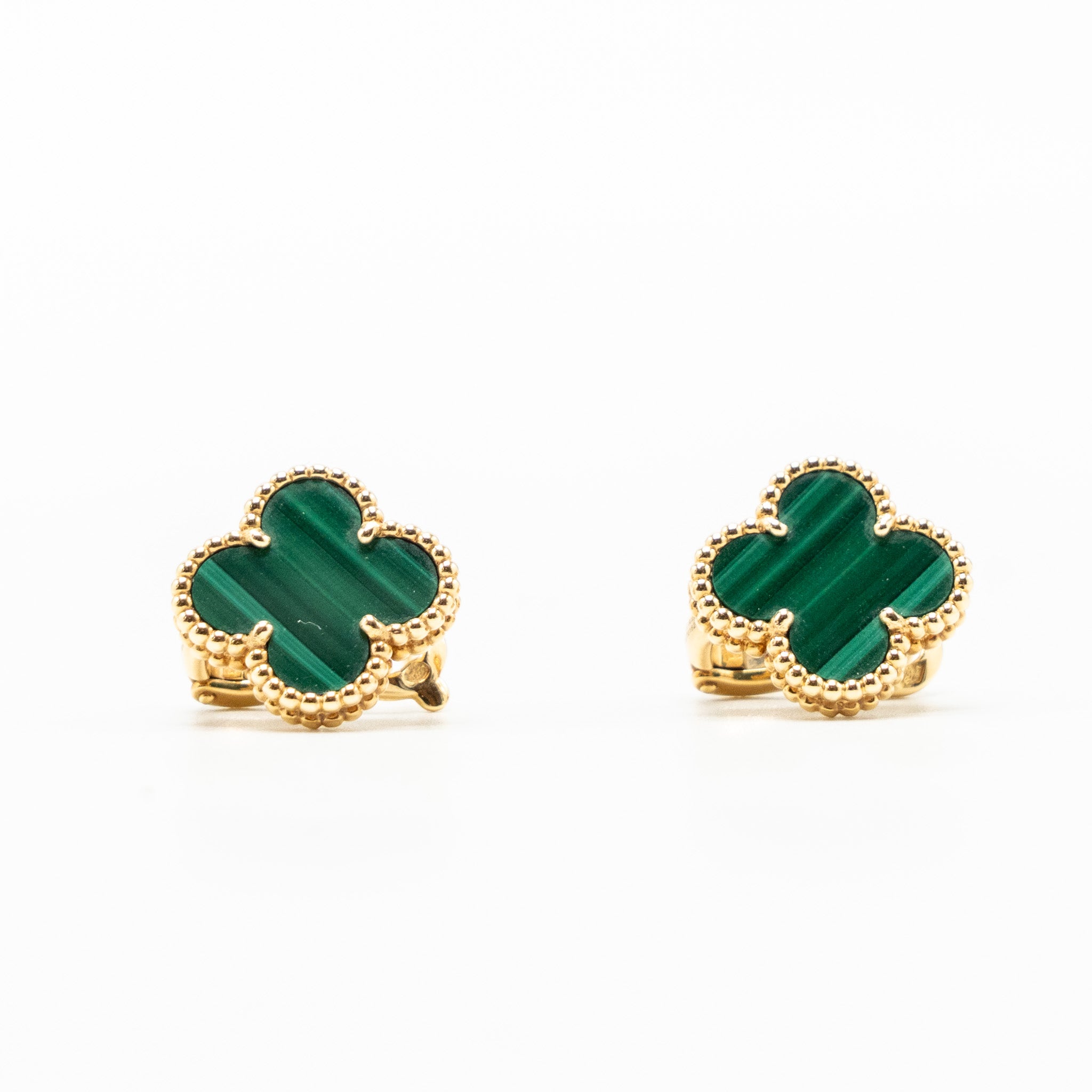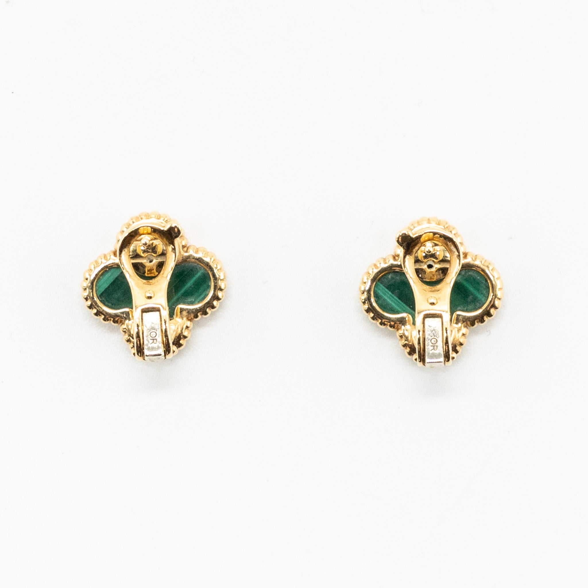 Van Cleef & Arpels Vintage Alhambra Earrings Malachite Yellow Gold
